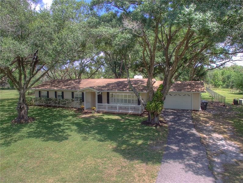 LUTZ, LAND, LOVE! Lutz is a popular, non cookie-cutter community BC of large lot sizes, variety of home styles & convenience of location. Sitting on 5.07 acres w/ nearly 2 AC of conservation to the E, you will instantly be charmed by the home''s shuttered elevation w/ white picket fence porch framed by majestic oak trees. You will be overjoyed by the large picture frame window which starts the natural flow of light through this home in the front family room & a fireplace w/ brick accented mantel provides the perfect, cozy focal point. An archway leads you into the dining/living room & kitchen combo area where volume ceilings contribute to the spaciousness. The kitchen exudes modern country charm w/ creamy white cabinets that pop with black appliances & soak in the view that nature has to offer in the backyard through the kitchen sink window. To enjoy more of that, venture through the french doors to the covered & screened patio where quiet & stars will greet you at night if not enjoying the sunset through the trees or bird watching during the day. Graciously sized secondary bedrooms feature cedar lined, California cabinets as does the master BR & hardwood floors warm all bedrooms & living areas while ceramic tile dresses the kitchen & bathrooms. An added bonus is a bedroom sized indoor laundry room w/ an abundance of storage presented by built-in cabinetry. After you're all settled in, just light a backyard fire pit, soak in the moonlit landscape & enjoy the ambience that is the Lutz lifestyle.