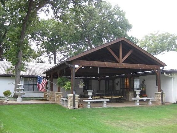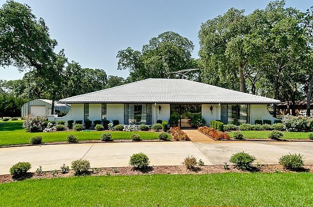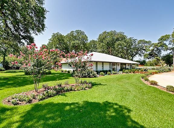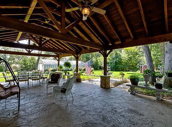 SURROUNDED BY MANSIONS ON PRIVATE CUL-DE-SAC! Circle drive plus fantastic patio with cedar arbor adds to the overall appeal of this one story home. Stone fireplace*numerous built-ins*wood flooring*bay windows*sunroom*separate study could be 4th bdrm*enormous laundry rm**pvt well*tile roof*25' X 56' bldg, great for car collector*hobbyist*wkshop*RV storage or the horses that are permitted! SEE MLS#11698823 FOR ADJACENT 1.35 ACRE PARCEL-MORE HORSES!