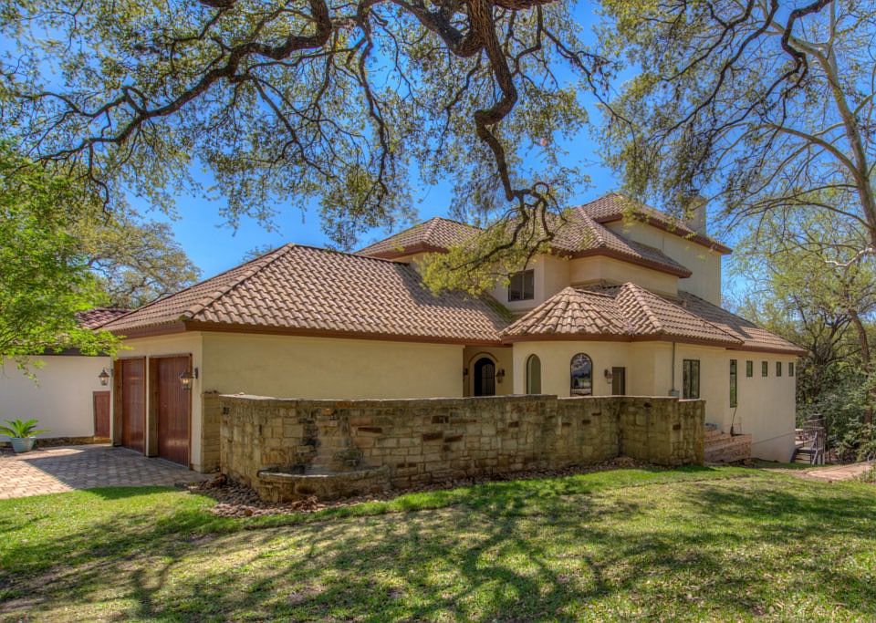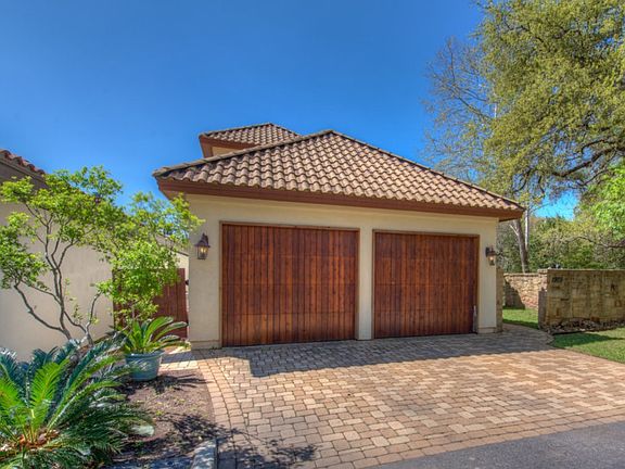 Stunning French Country-style home w/courtyard entry in gated waterfront community. Airy light-filled rooms, stained concrete & marble floors, wonderful spaces for reading throughout. Center island cook's kitchen w/prep sink, gas range, huge pantry. Sunken living opens to patio overlooking large natural back yard. Master on living level w/spa-like bath, including jetted tub, huge walk-in closet. 2beds/2baths, flex room, and large game room upstairs. Private guest suite with full bath on top floor and city/lake view on top floor.
