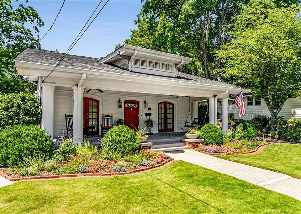 Historic with Location, Location, Location. Landmark home with generous space for gracious living and entertaining. This home has been "Ground Zero" for welcoming newcomers and hosting hundreds of friends for the last 40 years. Beautiful columns frame a large front porch complete with a swing and rocking chairs. Enter to beautifully restored gleaming hardwoods throughout. Living room boasts a fireplace and French doors. The formal dining room has another French door to lead out to exceptional gardens with terraces that give this home it's lush appearance. The updated kitchen is huge with cabinets galore and opens to a very spacious family room with a breakfast/ dining area and windows everywhere. A massive screened porch across the back allows steps down to even more terraced gardens, patios, a fire pit and a Dbl Carport, Garage, Shop or Storage and a big storage above garage that would make an incredible office or studio. This home features 4 bedrooms, walk in floored attic, 2 bathrooms, beautiful setting and tons of storage. Minutes to downtown, walking distance to Woodward Academy, near Beltline and all the Lakewood area Studios and Tyler Perry Studios. Strictly by appointment.