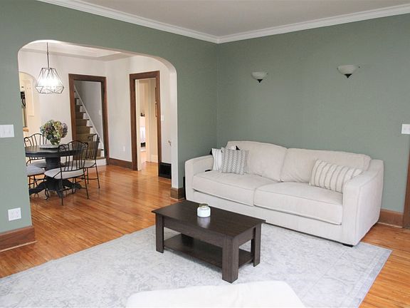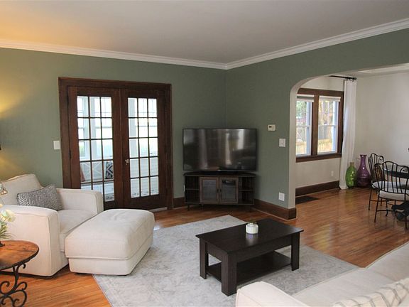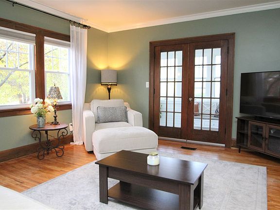 Move In Ready Charm-hardwood floors, 3 Season Room, fenced yard, updated Kitchen, 3 Bedrooms, 1 Bath, and 2 car garage. What more could you want? Beautiful 1.5 Story Home full of charm and updates. Gorgeous hardwood floors throughout the house. The beautiful Living Room has French doors to the perfect 3 Season Room. Dining is spacious with updated lighting. The Kitchen is nice, bright, and updated. 2 Bedrooms and a full Bathroom complete the first floor. Upstairs you will find a great spot for an office and a 3rd large Bedroom. Out back you have a privacy fenced yard, a lot of beautiful trees, and the 2 car garage. All appliances stay. Kitchen and Bath are updated. Roof and siding are 8 years old and there are a lot of newer windows throughout. Come see it today!