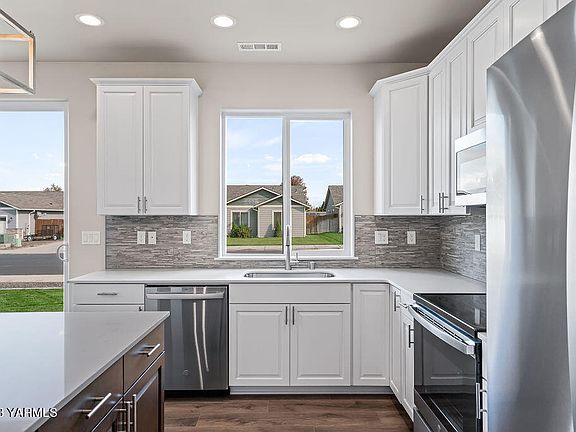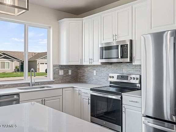 Welcome to this stunning, brand-new 4-bedroom, 2-bath home. As you enter, you'll be welcomed by tall 9' ceilings and the open layout kitchen and living area. The kitchen boasts a range of high-quality features, including quartz countertops, soft-close hinges, and an undermount sink. Meanwhile, the living room features a cozy gas fireplace. Thoughtfully laid out, the primary bedroom is on one side of the house and offers a walk-in closet and a luxurious en-suite bath with double sinks. The other bedrooms are located on the opposite side, providing privacy and space. The property's professionally landscaped yard is easily maintained and the backyard is fenced for privacy. Enjoy modern conveniences in the spacious 3-car garage, including remote Wi-Fi garage door openers, 8' tall garage doors and a 9'x8' single garage door. This home is the perfect blend of style and functionality, with numerous thoughtful upgrades. Come experience the beauty and comfort of this exceptional property for yourself.