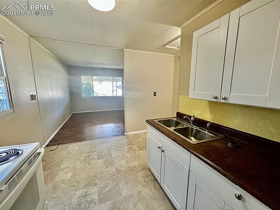 Charming 2 bedroom home in Stratmoor Meadows in South West Colorado Springs! Covered front porch enters to large living room with wood laminate flooring. Open floor plan, kitchen walks out to covered patio in fenced backyard with storage shed! Two roomy bedrooms with close access to full bath. Vinyl windows throughout! Great established rental history. Conveniently located near Broadmoor Town Center, Quail Lake, and I-25! A little sweat equity in this house would make it a great home! Property is sold in as-is condition.
