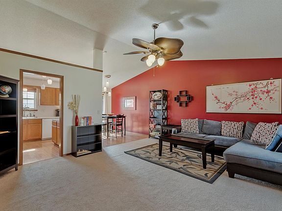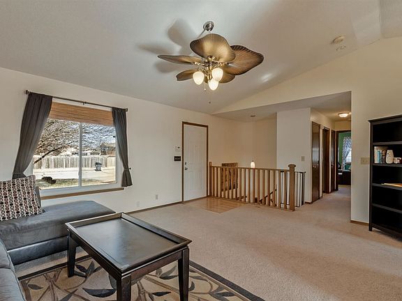 This home in the Goddard School district is move in ready. All neutral decor; open floor plan with vaulted ceiling; kitchen with tons of counter space, and eating bar; main floor laundry; generous master bedroom and attached bath with 2 sinks and walk in closet; large family room in daylight basement, along with additional bedroom and 3rd full bath. The yard is completely fenced and includes an irrigation well for the sprinkler system. HVAC is 1 year old, hot water heater replaced 12/2015 and new living room window installed in Fall of 2016. All the appliances remain with the home including the refrigerator, washer and dryer. TRULY MOVE IN READY! Shelves and curtains in child's room do not remain.
