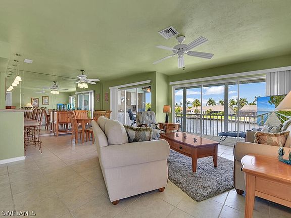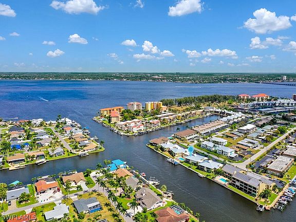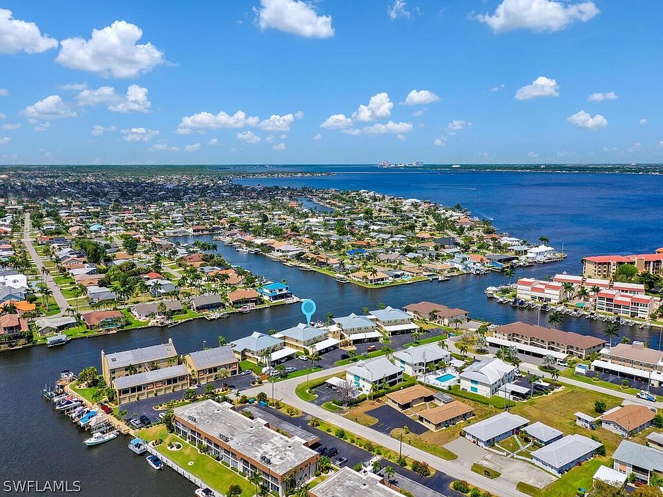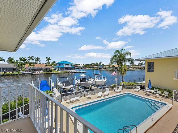 Live in paradise! Enjoy looking over the beautiful waterways of SWFL from this second floor condo w/ DIRECT Gulf access. Boat Dock Space is Available on a first come first serve basis (buyers are able to install a boat lift if desired). BRAND NEW ROOF & BRAND NEW A/C, plus all you have to do is bring your personal items due to the home being offered TURNKEY. Optimum storm protection in place w/ impact resistant windows and electric shutters on the screened lanai. Situated in a highly desired corridor of Cape Coral, this home is perfect for seasonal or annual SWFL living. Offering a comfortable open concept living layout, tile flooring throughout, long screened rear lanai w/ wet bar overlooking the pool & canal, retractable screen door at front entry, custom mirror wall in dining area, spacious kitchen w/ breakfast bar, stainless steel appliances, in-residence laundry closet, large master suite w/ updated bath & walk-in closet, and guest room w/ full bath. There is a community area on the second floor of building, a community pool literally just steps away from this unit, one assigned storage closet in carport area, and one assigned covered parking spot. Very convenient location- easy access to Fort Myers, right down the road from the riverfront Jaycee Park (w/ fitness stations, playground equipment, picnic areas & BBQ grills for rent), right around the corner from downtown Cape Coral, and just a short drive to the Cape Coral Yacht Club which is currently undergoing a multi-million dollar renovation that includes a two-story, 47,000-square-foot community center, two resort-style pools, and an fishing pier.