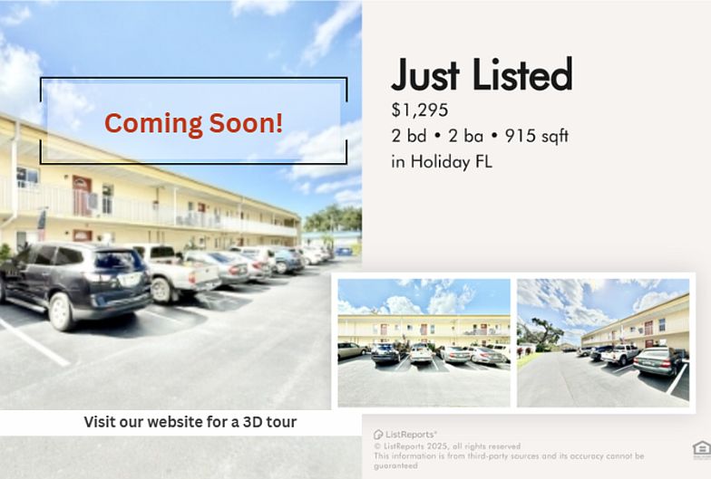 ** New listing with 10 Stars Property Management ** Beautiful 2 beds 2 baths is available for rent in Holiday, FL. Welcome to your new retreat at 1915 Schlotter Circle, Unit 204, Holiday, FL 34690! A bright and inviting home nestled near Florida's stunning Gulf Coast! This spacious unit offers comfortable living with modern touches and plenty of natural light. Just minutes away, explore Anclote River Park and Key Vista Nature Park for fishing, kayaking, and breathtaking sunsets over the water. Tarpon Springs Sponge Docks is a short drive away, offering authentic Greek cuisine, boutique shopping, and waterfront charm. You'll also find easy access to Downtown New Port Richey, Fred Howard Park, and beautiful Clearwater Beach for weekend adventures. With top-rated schools, grocery stores, and cozy local cafes nearby, this location blends peace, convenience, and coastal excitement, perfect for anyone ready to enjoy the Florida lifestyle! Features: - Mix of tile and hardwood flooring for durability and elegant touch - Ceiling fans for enhanced comfort and airflow - Window coverings for privacy and light control - A relaxing bathtub and walk-in shower for versatile comfort - Assigned parking space for convenient parking - Tenant is responsible for paying all utilities Pets are allowed. No more than 2 pets per property. Weight limit of 55lbs per pet. No aggressive breeds. Applicants must complete a free pet application and have animal approved with vaccination record. The monthly pet fee will be determined by your pet screening score. Does not apply to medically/emotional support prescribed and/or service animals. At 10 Stars, we offer multiple services to make your stay with us easy and comfortable. We have a same-day application approval and a quick move-in for no additional cost. Our team is professionally trained and will be able to assist with any leasing, billing, or maintenance issues our tenants have. We also offer an emergency line available 24/7 for any urgent cases. Tenants have access to an online portal where they can make rent payments, communicate with our team and get updates on their payments and maintenance requests at all times. THE FIRST MONTH AND SECURITY DEPOSIT ARE REQUIRED All residents are automatically enrolled in the 10 Stars Resident Benefits Package at a cost of $7.99 per month. This program was developed to enhance the overall rental experience by providing added convenience, protection, and value throughout the lease term. Enrollment is required and cannot be waived. The package may only be initiated at the time of lease signing or renewal and includes a range of benefits designed to promote a more efficient, flexible, and secure tenancy. Please see the link below for more details. Renter's insurance is required prior to moving in. Rules and Regulations are on our website! Only $65 non-refundable application fee per adult with 10 stars property management