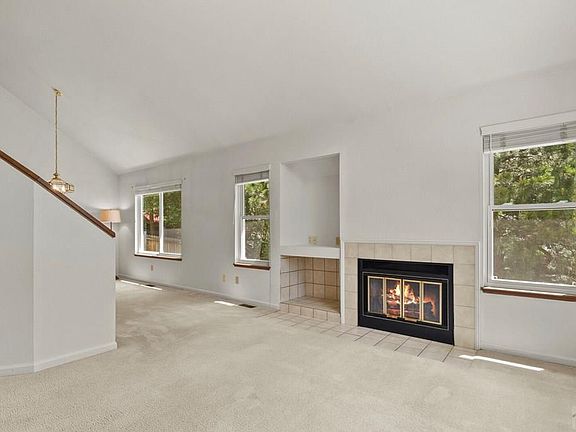 “I'm home” is how you will feel in this home that feels spacious yet cozy. The kitchen is well lit with an eating area and pantry that open to the dining area. The dining and living area feature 2-story, vaulted ceilings and fireplace that give the area a great sense of space. Main level bedroom, bath, and laundry allow single floor living. Upstairs is for privacy and luxury. Master Bedroom suite features vaulted ceilings, ample sitting area with several windows, walk-in closet, a private, skylit bath with oversized soaking tub. The bedroom opens to a cozy loft with built in bookshelves and vaulted ceilings. The backyard is fenced, with a sloping lawn and lots of trees offering privacy as you enjoy the open patio. Oversized 2-car garage with workbench, cabinets, track lighting, and attic storage.
