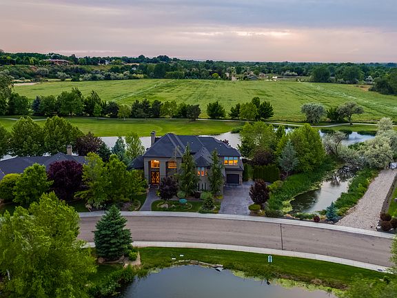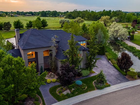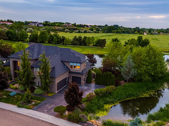 Waterfront home on BanBury Golf Course provides stunning views! Beautifully appointed luxury residence in premier Banbury Meadows. Elegant entry leads into great room where walls of windows frame surrounding views. Large open kitchen/nook & great room ideal for entertaining, main level bonus room w/wet bar, gorgeous Travertine floors & soaring ceilings. Master retreat features fireplace, private deck, luxurious bath w/ large jetted tub, tile shower & walk in closet. Water views from front of home as well.