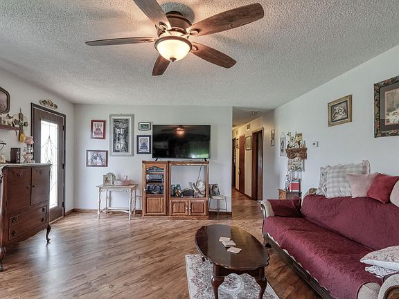 Must-see home alert! This charming 3-bedroom, 1.5-bath home boasts 1,484 sq ft of living space on 18.8-acres. The home is on rural water and features a spacious kitchen and living room. The 3-car attached carport and a covered sitting area with a ceiling fan provide perfect spaces for relaxing or entertaining outdoors. Additionally, a detached two-car garage offers extra parking or workshop space, and an RV carport is perfect for storing your RV or boat.The property is primarily flat hay field, offering endless possibilities for agricultural pursuits, recreation, or simply enjoying the open space and tranquility. Don't miss out on this unique property that has so much to offer. Contact your favorite realtor today to see this fantastic home before it's gone!