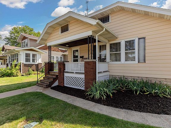 BACK ON THE MARKET! (Buyer's contingency fell through) Welcome to this charming 1934 ranch on a quiet street featuring 2 bedrooms and 1 bath. This meticulously maintained property exudes the original charm with coved, tray ceilings, door knobs, doors, beautiful built-ins, and pristine wood floors. Enjoy a remodeled kitchen with custom cabinets, new windows including a garden window above the sink, plenty of counter space and new appliances. More updates include a renovated bathroom, custom blinds throughout, new ceiling fans, and many more. Relax on the cozy front porch or entertain on the patio in the large back yard. Completing this gem is the large basement with ample storage space, an attic that is used for additional storage but could be refinished into living space, and a detached 2-car garage. This is the perfect blend of vintage charm and modern updates, all it needs is you!