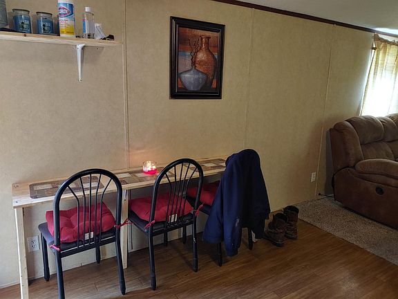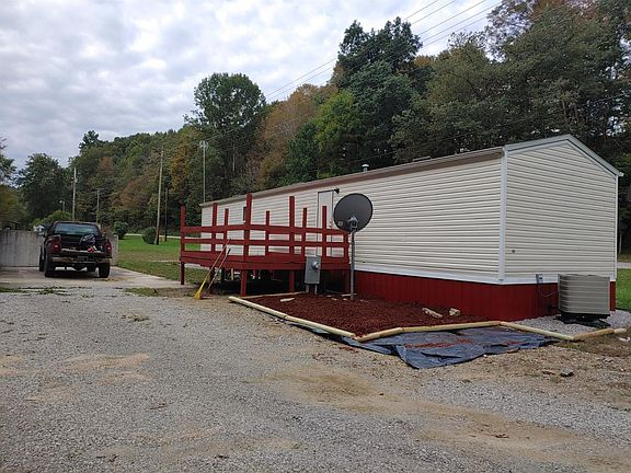 Cozy single wide Clayton mobile. 2 bed 1 bath Poured concrete 2 car garage with metal roof plus a nice little barn. Sitting on .49 acres per PVA and deed. Creek , and nice back deck for relaxing. This is a great starter. Call today