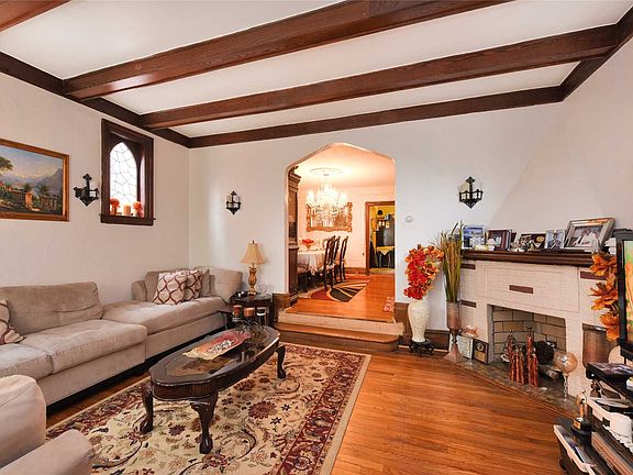 Det. Brick Tudor Features Sunken L/Room-Wood Beams, 12 Ft Ceilings. Formal D/Room. Original Wood Floors. Renovate Kitchen To Your Taste.Three Generous Sized Bedrooms & Finished Walk-Up Attic! Home Has A Finished Bsmnt W/Bar, Full Bath And Access To Backyard. Worry-Free Parking: Pvt Driveway And 1 Car Garage. 1 Block To Q3 To Jfk & F Train Or 7 Mins Walk-Q4 To E& J Trains.