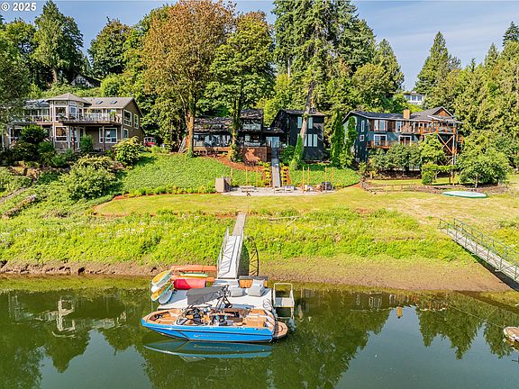 Vacation where you live. Experience hard-to-find riverfront living in West Linn, where luxury meets tranquility along a close-in stretch of the Willamette River. Set on a private enclave in the highly sought-after Robinwood neighborhood, this home offers serene views without compromise. This waterfront retreat has been transformed inside and out, thoughtfully redesigned for both comfort and connection to its stunning natural surroundings. This 4-bedroom, 3.1-bathroom home features multiple living and dining areas, two en suites, an office, and a beautiful chef’s kitchen outfitted with top-tier appliances, custom cabinetry, and a 3-pane sliding window that brings the outside in. Natural light pours into the home and eye-catching views can be enjoyed from almost every room. Major upgrades throughout include new windows, siding, HVAC, solar panels, generator, hardscaping, landscaping, upgraded electrical panel, and more.Entertain on the expansive deck, offering a built-in outdoor kitchen, designated lounging and dining areas, and a hot tub with river views. Below near the water, a spacious patio is perfect for fireside evenings, outdoor movie nights, and unforgettable gatherings. A new dock with deep-water moorage keeps your boat right at home.With no homes across the water and minimal boat traffic, this property offers exceptional waterfront privacy and tranquility. Enjoy a coveted riverfront community where homes seldomly come to market—and sell quickly when they do. This home perfectly blends seclusion with convenience, just minutes from downtown Lake Oswego, Mary S. Young Park, and top-ranked schools. More than a home—it’s a lifestyle. Schedule your private showing today.