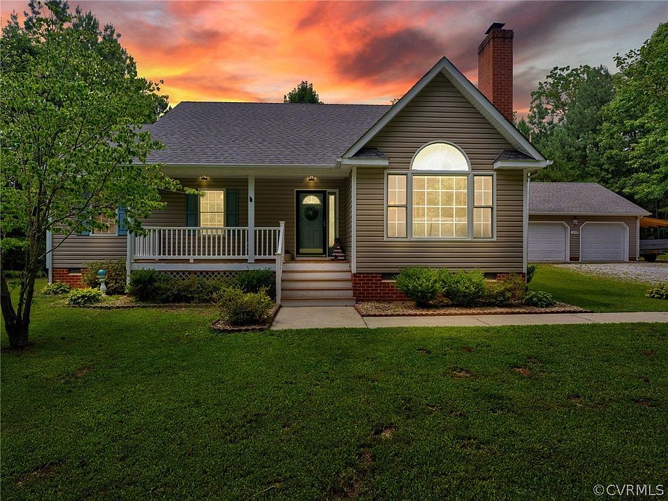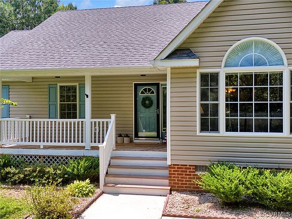 BACK ON THE MARKET at NO FAULT of Seller! You are going to LOVE this meticulously maintained rancher that is perfectly placed on FOUR private acres. As you come down the long private drive you will admire your new home and MASSIVE 2.5 car detached garage with a NEW lean-to just added! This garage is the absolute dream workshop, hangout, or studio! Inside the living room features beautiful hardwood floors, vaulted ceilings, a stunning palladian window, and gorgeous wood stove. The open-concept kitchen features a breakfast bar, dining space, tile floor, and real oak cabinetry. You will love the primary suite bath with double vanities, jetted tub, separate shower, and walk-in closet! The back yard is perfect for entertaining with a deck & large fenced area! NEW heat pump and NEWER water heater! 15 minutes from Colonial Heights and 18 minutes from Fort Gregg Adams! Come inside and fall in LOVE!