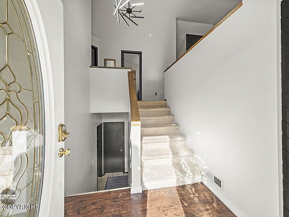 Stunning Eaglewood home features countless upgrades. Recently remodeled kitchen includes granite countertops, quality cabinetry, and a custom stainless steel backsplash. Spacious downstairs master suite offers a private bath with a deep soaker tub, heated towel rack, and a rainfall showerhead for a spa-like experience.Relax on the spacious remodeled front deck and enjoy mountain views...Fenced yard ensures privacy on the spacious corner lot. Enjoy direct access to miles of Eaglewood's paved walking and biking trails, maintained year-round. With an easy commute to JBER and downtown, this home offers both convenience and tranquility.