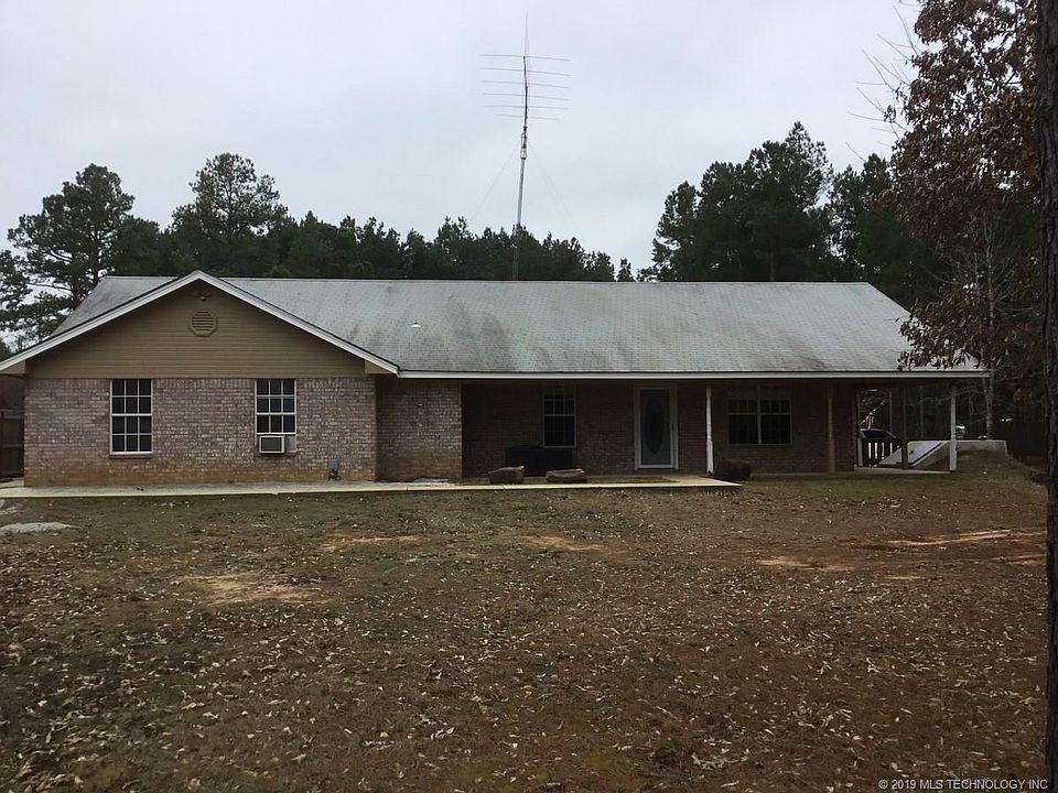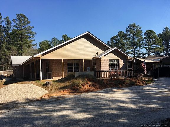 Beautifully unique 3 bedroom/ 2 bath brick home on a very private 2 acres but only 2 miles from town, 1/4 mile from Kiamichi River & in the heart of the Kiamichi Wilderness. It has a finished 2 car garage, man cave with H&A, hot tub & loft, 20X60 insulated shop building with heat & heavy duty swing out winch, storage building, cellar, above ground pool, carport and privacy wood fence, all on 2 beautiful acres with mature pine trees. Home has wood plank flooring and lots of windows. A must see!!!