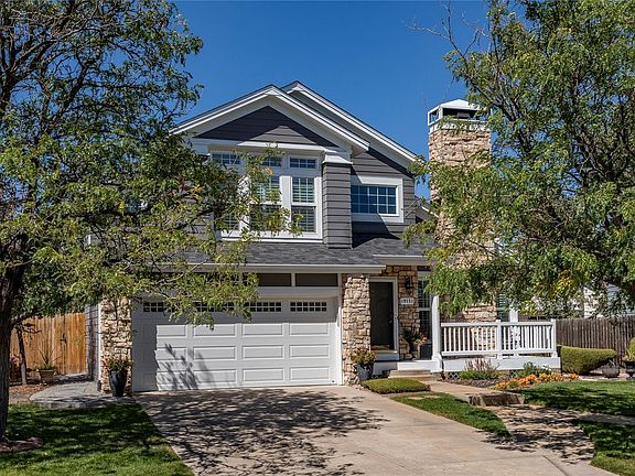 Welcome Home to this updated gem in Jackson Farm! Walking in, you are greeted by beautiful hardwood floors that complement the functional main floor layout that includes a great room with vaulted ceilings, kitchen with stainless steel appliances, a dining room and half bath. From the dining area, walk out through the french doors onto the freshly painted deck and enjoy beautiful mountain views! The upper level holds a master bedroom with en suite bathroom and walk-in closet, as well as 2 additional bedrooms and full bath. The finished basement has an open rec/bonus room with another bedroom, bathroom and laundry access. Fenced in backyard, mountain views from back deck, lots of updates including plantation shutters, fresh exterior paint, cul-de-sac living and more! Close to Cherry Creek Schools, shopping, amenities, parks and E-470! You don't want to miss this home, it's a must see!