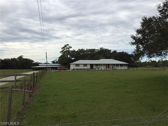 Beautiful 4 bedroom with 2 1/2 baths home on 5 acres with a 5 horse stable pole barn. This move in condition home offers a very spacious and comfortable floor plan with an open kitchen, large master bedroom and bathroom which boasts a separate tub and shower, tile floors throughout the living area, decking in the attic for additional storage, an over sized garage, a large screened lanai with a jacuzzi and a large front porch. The grounds has 3 pastures, a front, rear and pond pasture, 3 wells and mature Oak trees with the 55' x 80' pole barn boasting 5 horse stalls with room for more. Call before you miss out.