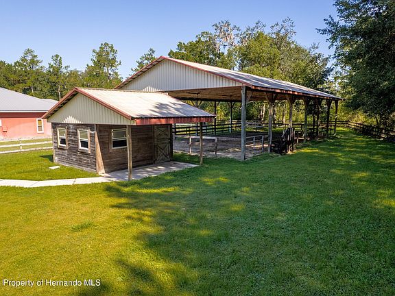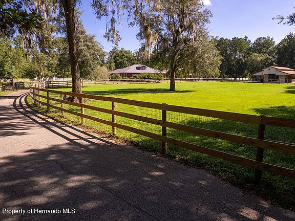 Two of the bedrooms are spacious master suites with beautiful wood floors. One of the suites has dual sinks, garden tub, walk-in shower and walk-in closet. The other has a walk-in shower, single sink, walk-in tub, walk-in closet and sliding glass doors to the pool/patio. The double master suites add versatility to the home, providing a private and comfortable space for extended family or guests. All bathrooms, laundry room, kitchen and pool area have tiled floors, everything else, beautiful wood floors. The unique flow throughout the entire home was well thought out as was the attention to detail. The kitchen is a chef's delight, exhibiting amenities such as a service window to serve food & beverage to your guest in the pool/patio area, stainless-steel appliances including a Viking double oven, cooktop, refrigerator, and dishwasher. All wood cabinets, granite countertops, and a breakfast bar. There is also sliding glass doors that lead out to the pool/patio from the kitchen. The formal living room flows beautifully with the kitchen for entertaining while cooking. The family room has sliding glass door that leads out to the pool/patio and flows into the open dining room with tray ceiling. This area is highlighted by windows that brighten the rooms with natural light and offer views of the surrounding landscape which creates a wonderful area for entertaining and making memories. The workout room serves as a versatile space that can be used as a home office or a 4th bedroom. There are 7 ceiling fans throughout the home. The covered pool area provides space to relax outdoors and enjoy a cup of coffee, to unwind after a long day, or to entertain. Inside laundry room with utility sink for convenience right next to an oversized, side entry two car garage. The entire home has built in surround sound, intercom system, and alarm system should you choose to hook up and enjoy. Other upgrades or resources include custom made double front doors 2019, alarms on all doors when opening/closing, owned water softener, Generac generator 2019 with extended warranty until May of 2026, new garage springs 2024 with 5-year warranty, 250-gallon underground propane tank (currently refilled by Sunrise). Bayonet air conditioner 2018, still under warranty. Tankless water heater, new water tank in the well-house 2024, new pool vacuum 2024, new dishwasher 2023, new septic tank 2023, entire home has New South double-pane windows with a transferrable lifetime warranty. 2019 Super Screen on garage, New Metal roof 2023, New fencing around barn and front field 2023, the front fence has an electric pasture guard installed. This home is an equestrian's dream with features such as a 1,296 square foot barn/stable with four extra-large stalls with rubber matted floors, fan in each stall, individual water hose for each stall, concrete center aisle, feed & hay room, and a tack room. Also, a 3,024 square foot pavilion/arena with electricity. Property is zoned residential/agricultural.