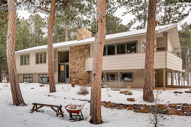 Here???s your chance to live in the highly desirable Woodmoor community. Nestled among towering pines, within walking distance to the Country Club, including golf, tennis, indoor/outdoor swimming, & dining, this wonderful .88-acre home rests on a quiet & peaceful cul-de-sac. Featuring beautiful views of the outdoors, a large living room w/ a genuine Moss Rock fire place, wood burning stove, adjoining dining area w/newer laminate wood floors & walk-outs to a wrap-around deck, this home also hosts main- level living. The spacious kitchen features newer stainless steel appliances, abundant counter space / cabinet storage & brand new Luxury Vinyl Tile floors. Also on the main level is the Master BR w/ a private bath, stand-alone shower & 2 closets, 2 additional bedrooms & a nicely updated full guest bath. The lower level comes complete with a large family room w/a walkout to a new stone patio & fully functional hot tub, a large bedroom suite w/ adjoining full bath, a laundry/mud room with utility sink & access to the garage. This Tri-Lakes / Woodmoor home has easy access to dining, shopping, highly acclaimed D38 schools, hiking trails, parks and I-25 freeway or Highway 83 access for commute North or South.