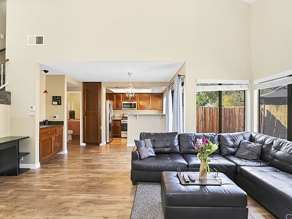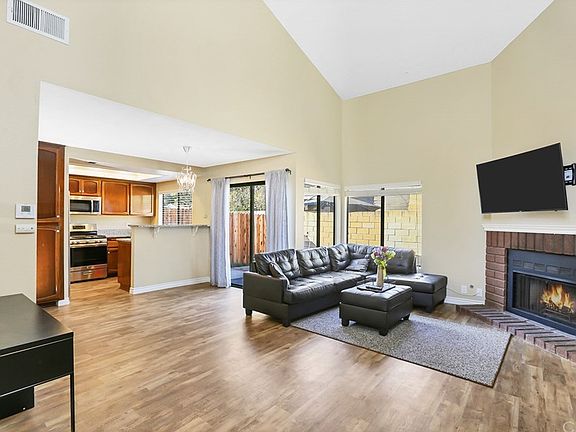This open floorplan townhome features an entry with high vaulted ceilings and plenty of natural light. Nicely upgraded with newer kitchen with granite counter tops and lighting, along with newer stove, microwave and sink. Fireplace in living room with large slider that's opens up to private patio area, perfect for entertaining. Upstairs offers cabinets for storage, along with 2 MASTER bedroom suites. The front bedroom features a private balcony with a walk-in closet and regular closet. Both bedrooms feature ceiling fans and updated bathrooms with tile flooring and bathroom vanities. The roof was recently redone. Home offers plenty of parking with 2 car attached garage and 2 additional permitted parking spots. Just steps from your unit is the community swimming pool and spa. Full-size washer and dryer hookups inside the garage. LOW HOA fee of $250 a month.