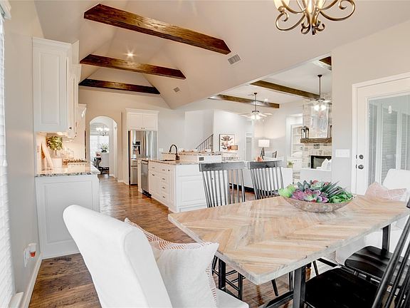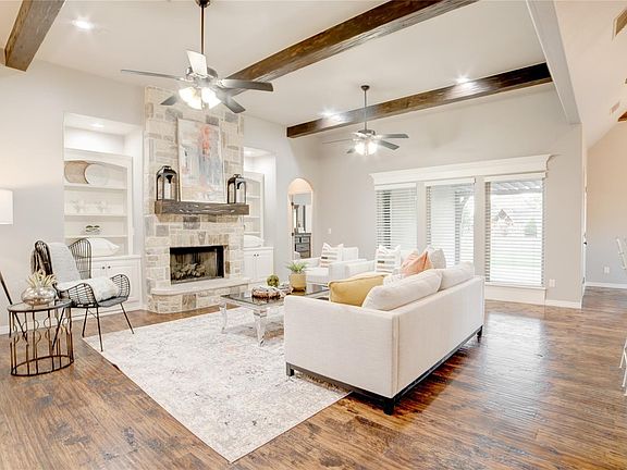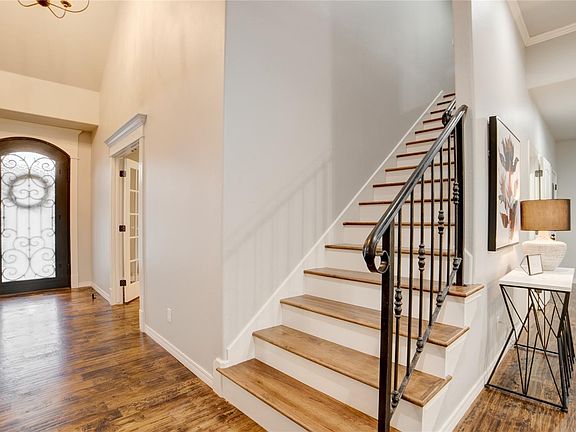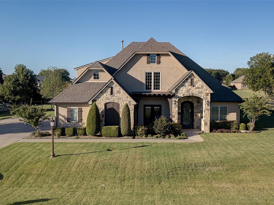 Beautiful home with no detail spared on this 1/2 ACRE culdesac lot in Stone Canyon. Fresh neutral paint, safe room, locker drop zone, extensive hardwoods throughout. 4 bedrooms (2 down & 2 up), 4 full baths (2 down and 2 up) AND 2 - 1/2 baths for guests (1 down and 1 up). This amazing open floor plan has an oversized kitchen with large breakfast nook and bar. A big walk in pantry with butler pass and oversized formal dining room. The office has its own private entrance. The primary suite with a lovely glamour bath and large closet that opens to the laundry room! Upstairs has a wonderful additional room w vaulted ceiling as well as a massive game/theater room. The backyard is well manicured with pergola covered back porch and lovely fireplace to enjoy fall/winter! Garage has FastTrack storage system and epoxy flooring! This one owner home will have you swooning, come see it quick!