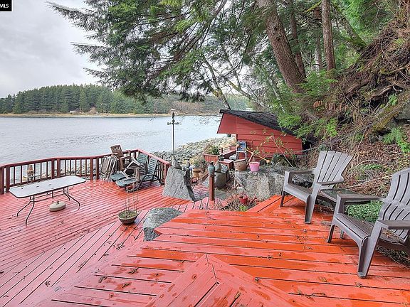 A rare gem....this charming tee harbor waterfront home with 3 bedrooms, and 2.5 baths is 1826 square feet with 4 decks that all take advantage of the stunning ocean and mountain views. There are stairs down to the property, but also a road where you can drive down into a newly built carport. There is also a 600 square foot shop in the basement of the house. A rare opportunity to own a Tee Harbor ocean front property.