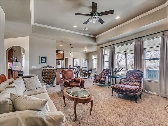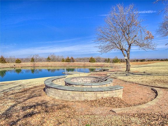 Looking for a place to get away from it all, a spectacular view, deer roaming freely, birds singing in the breeze, fishing anytime you want, then look no further. This lovely home is located off route 66 in Luther, 30 minutes from the heart of Oklahoma City. This home is on two tracks of land totaling 10 acres. It offers three bedrooms, a study, 2.5 bathrooms and a two-car garage with an 8 x 4 safe room. The two-car garage has never had a car parked in it. It has a separate heat and air system and it is completely insulated. Impeccably landscaped with a large extended patio, outdoor kitchen. There are gravel walkways between the shop, 7-foot stone firepit and stocked pond. The pond has an aeration system and private fishing dock. It includes a new 50 x 40 totally insulated shop that has a separate 10 x 20 room, with 220 wiring, two extended height garage doors, and a carport that covers tractors, trailers etc. Sprinkler system, fenced dog area, and custom landscape lighting too!