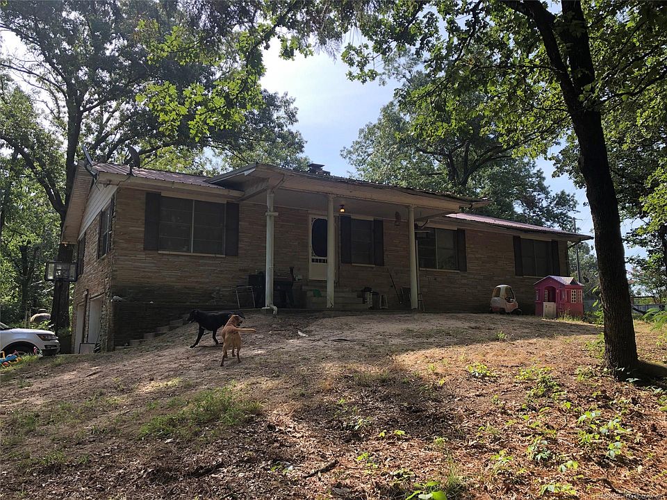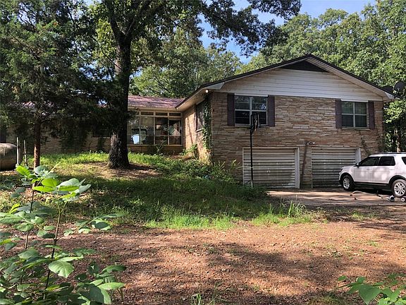 HIDDEN AMONG THE TREES...A Big Beautiful 2 Story White Stone Home with Metal Roof, 3 Car Garage & Safe Room on Lower Level. Upstairs step inside Kitchen/Dining, Breakfast Bar, Pantry, Wall to Wall Cabinets, then step into the Great Room/Living Room with Stone Woodburning FP, leading to Arizona Room could convert to Sunroom easily! Outdoor Patio on South side shaded well, Large Stocked Pond with Bass, Catfish, Perch & Crappie! Wildlife enjoy the Hardwoods, Pines, Cedars & Under Brush...Over 70% Wooded!!