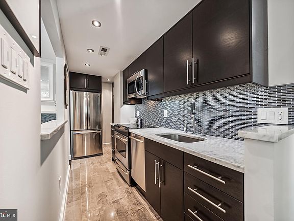 Welcome to this beautifully renovated one-bedroom, one-bath courtyard condo at the sought-after Wardman Condominium. From the moment you walk through the door, you'll want to call this chic apartment your new home. The bright and open living/dining space has built-ins, a wood-burning fireplace with a mini brick tile surround and wood mantle shelf, recessed lighting, and a pass-through to the kitchen. This kitchen is stunning, with Carrara marble countertops, stainless steel appliances including a French door refrigerator/freezer, great cabinet space, tile backsplash, Kohler Karbon faucet, and under counter lighting. The bathroom renovation included a glass stall shower with subway tile, vanity with drawers, and more. The bedroom has plenty of room for a queen-sized bed plus dresser and has three closets - two for clothes and one for extra storage. Other great features of this unit include central air-conditioning, private in-unit washer and dryer, coat closet, custom stained hardwood floors, private entrance, and more!!! This desirable, pet-friendly (with a weight limit) community offers low condo fees and is close to all of the shops, restaurants, gyms, and parks that Dupont, 14th Street, and Adams Morgan have to offer. Two blocks to the S Street dog park and close to both the Red and Green/Yellow line Metros!