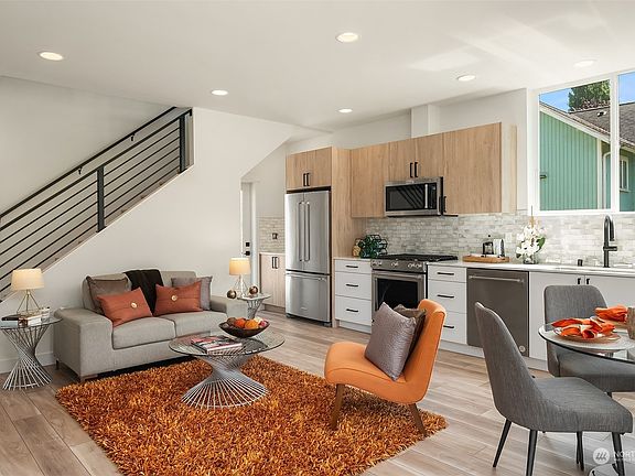 Stand-alone home (no shared walls) sits among six residential small lot homes clustered in a fortress of design by one of Seattle’s original design-builders. Spectacular model of design, efficiency, flow and affordability. Windows are strategically designed into the experience to offer optimum connection with the outside world, while facilitating the inner vibe. Well-appointed main levels with gourmet appliance packages. Add in private terraces, garden features, EV ready Parking for All Homes and it’s easy to see the tremendous Value. A neighborhood flanked by greenery, access to trails, and the hilly horizons surrounding North Beacon Hill. Add the easy commute, walkability, light rail and you have perfection.