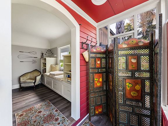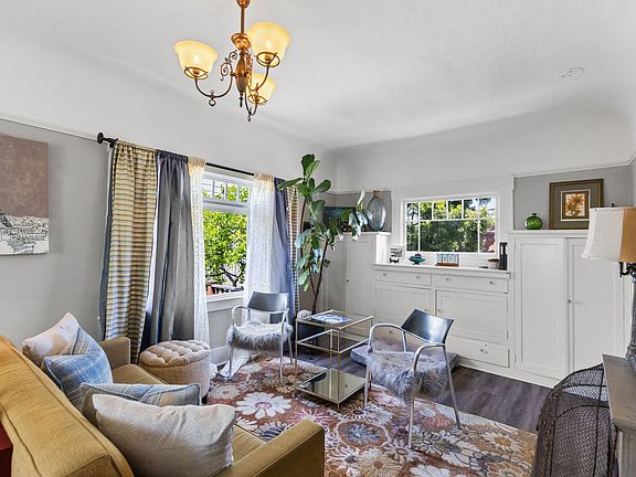 Relax, unwind and fall in love with life daily in this luxurious, storybook 1914 garden cottage, complete with two decks, tranquil fountain, vintage brick patio, and abundant natural light. With its charm and originality, this cottage feels as if it belongs on the cover of a magazine! French doors in the bedroom open onto a private deck, inviting the outdoors in. The out door space with lush and mature planting wraps around the entire home. The remodeled bathroom features a marble mosaic floor and a state-of-the-art Jason Microsilk oxygenated spa tub, offering a spa-like retreat. The gorgeous vintage kitchen is appointed with Calacatta marble, an antique china cabinet, and a classic gas range with double ovensfully functional for its petite size. Italian hand-blown glass light fixtures add elegance to both the bedroom and bathroom. Every room is bathed in natural light, with windows or French doors framing the lush surroundings. The dining room opens onto the backyard through French doors, leading to a deck where you can sip morning coffee beside the fountain or dine alfresco under the stars. Offered fully furnished, unfurnished optional for longer leases. Amenities include a full-size washer and dryer, a queen mattress with additional bedding, off street parking on shared driveway and EV charging option. Located in a historic section of Alameda, this cozy sanctuary is just half a block from the grocery store and a short walk to the waterfront and main shopping district. 15-20 min walk to Alameda Beach!