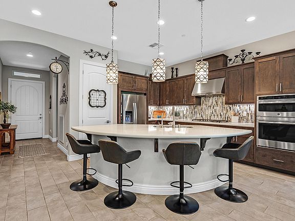 New Improved Pricing on this amazing home! Experience resort-style living in the coveted Trilogy Community, surrounded by vineyards, olive trees, and rolling hills. This elegant home features soaring ceilings and wood-grain tile flooring throughout. The gourmet kitchen boasts quartz countertops, a mosaic tile backsplash, stainless steel appliances, and a large island with seating, seamlessly flowing into the dining area and family room—perfect for entertaining. The primary suite offers a spa-like retreat with a barn door leading to a luxurious bath featuring dual vanities, oversized shower with seating, linen storage, and a walk-in closet. A versatile second bedroom includes a custom Murphy bed, ideal for guests or a home office. Step outside to a beautifully landscaped backyard with a covered, stamped concrete patio, outdoor lighting, and ceiling fan, creating an inviting space for year-round enjoyment. Upgraded with a prepaid 20-year solar lease and stylish shiplap accents, this home blends modern convenience with timeless charm. Enjoy Trilogy’s world-class amenities, including dining, wine tasting, spa, fitness center, pools, and social events. This is not just a home-it's a lifestyle!