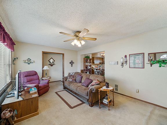 Adorable and meticulously well kept 3 bed/1 ba home that has has 2 living areas, large covered deck in the backyard, storm shelter, shop with roll up door and alley access, carport, new CH/A in 2018, new hot water tank in 2019, ceramic tile in the kitchen and hardwood floors under the carpet, privacy fence, and NO FLOOD ZONE. Washer/dryer and refrigerator stay with the home.