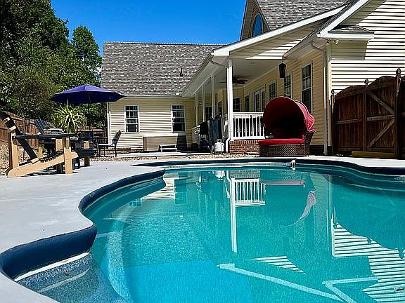 Sellers have loved living in this beautiful 4 bedroom, 2.5 bath cape cod sitting on a gorgeous 1 acre lot! Upon entering, you will be impressed with the freshly painted cathedral entryway open to the large office, formal dining and living room. The first floor also features an eat-in kitchen with breakfast nook, easy accessible laundry room, main bedroom with updated private bath (walk-in shower & expanded walk-in closet) and 2nd bedroom with hallway bath. Upstairs, you'll find additional bedrooms, half bath and a 25 X 13 bonus room for whatever your heart desires! Spend mornings on the peaceful front porch or evenings in the private backyard with a beautiful in-ground pool, hot tub, and patio. New roof 2025, A/C unit 2024, hot water heater 2024, and upscale sewer system 2024. New carpet and nice hardwood flooring. An attached two car garage with concrete driveway completes this package. Call today to set up a private tour of this desirable country property only minutes from I-77! Home, pool and hot tub warranty included. Home requires flood insurance if buyer has a lender. If cash sale, flood insurance is an option. To my knowledge, the property has never flooded or come close to flooding.