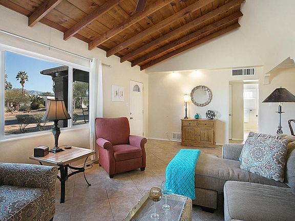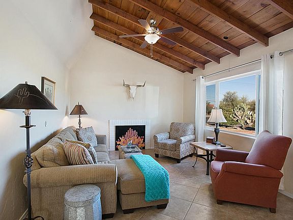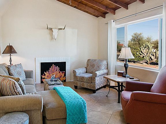How cute is this! Updated throughout with all tile floors, this two bed/one bath home retains its charm with wood ceiling and fireplace in the living room. Views to U/A from the living room - walking distance there and more. A bonus room with french doors to the back yard adds a bit of space - office area perhaps? And the fenced yard has a storage shed and garage with alley access. Check it out!