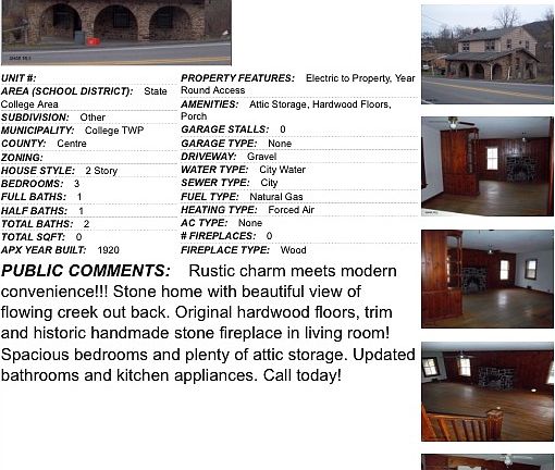 This single family 3 bedroom 1.5 bath comes equipped with a fireplace, kitchen, and newly refinished hardwood floors. Great backyard along the Spring Creek. Ideal for BBQs and the angler. Downtown State College is only a mile down the road and Cafe Lemont, Kamrai Thai and Sushi, and Happy Valley Brewing Company are all within walking distance. Partially-furnished. Furniture included if desired. Available for rent Dec. 10th. Owner pays for sewer, trash and water and a heat credit of $500. Tenant pays for heat (oil), electricity and internet.