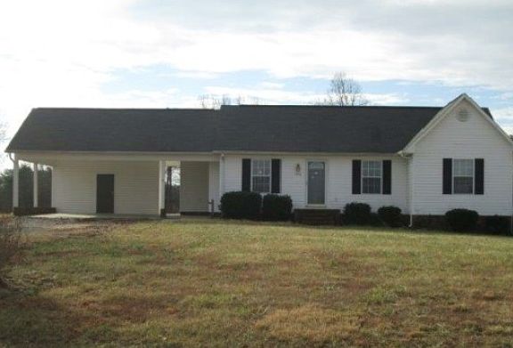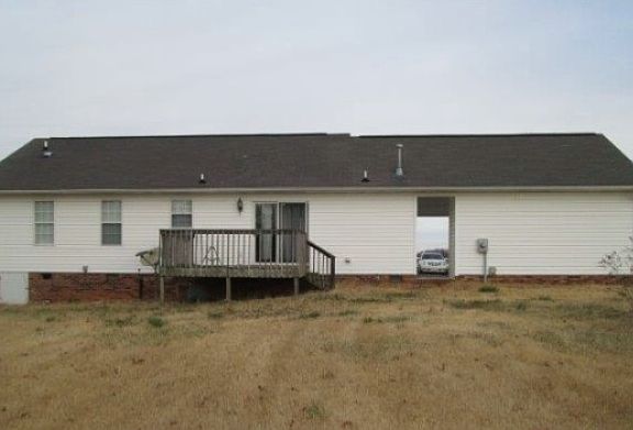 Nice vinyl ranch on one acre with 1146 finished square feet, three bedrooms, two baths, gas heat with central air, gas log fireplace, hardwood floors, bright eat-in kitchen, attached carport, and rear wood deck.
