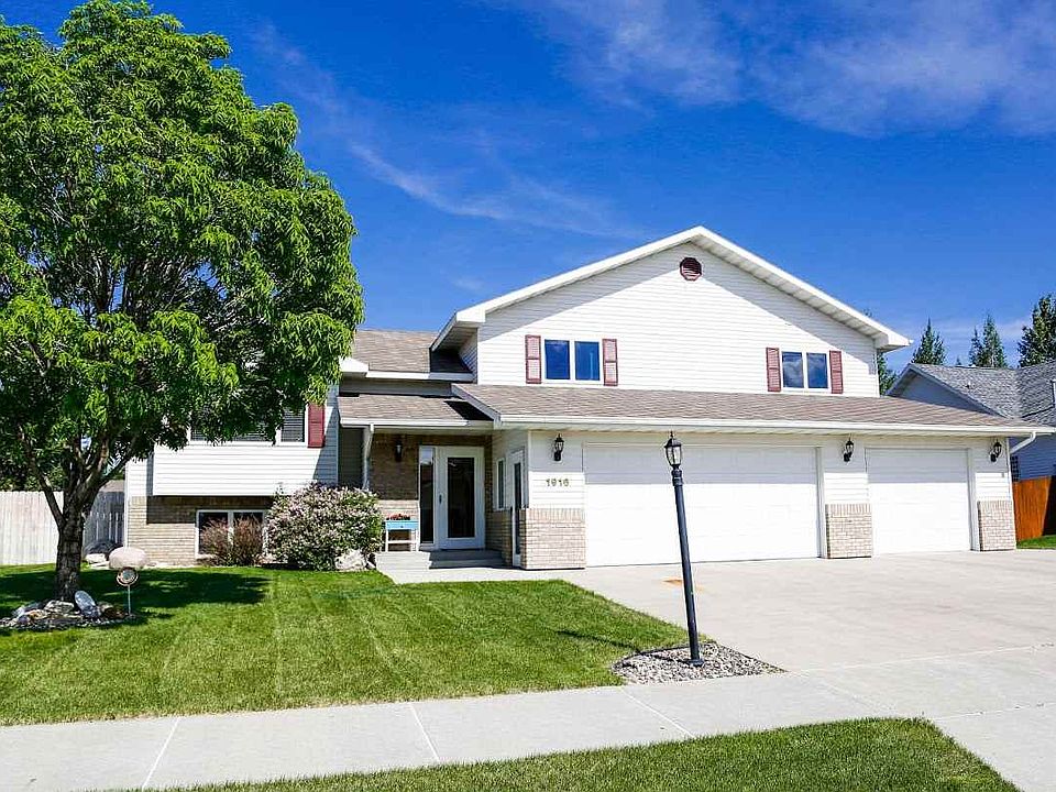 Take a look at this exquisite 5 bedroom, 3.5 bath split-level home in NW Minot. From the moment you step inside you'll be impressed with the quality craftsmanship & space this home has to offer! The kitchen boasts plenty of prep space for cooking, white appliance package, peninsula, built-in desk and is open to the spacious dining room. Also on the main you will find a formal living room with vaulted ceiling boasting tons lots of natural light. Heading upstairs is the spacious master suite with a walk in closet and an master oasis w/ dual sinks, soaker tub and 3/4 shower. Also on this level are 2 additional large bedrooms each with WIC and a full bath. Heading down to the walk-out lower level, you will find a large family room perfect for entertaining lot of guests, 1/2 bath and a storage room. There is also access to the 24 X 34 heated garage including floors drains. Heading down a few more stairs to the daylight basement, there are 2 additional bedrooms, full bathroom, and laundry room with utility sink and additional storage. Outside, this home is also appealing with a fully fenced yard, sprinkler system, deck with tuck under shed. This house is an absolute showpiece and shows pride of ownership!