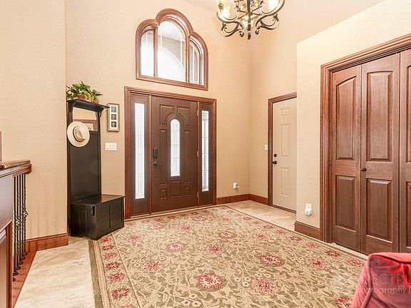This Amazing CUSTOM built home is nestled on a hill in a private cul-de-sac with beautiful VIEWS of sunsets, superb high end finishes w/ exceptional craftsmanship! 4 fireplaces, 2 offices, 2 living rooms or one could be a rec/game room, 2 family rooms, 4 BR, 5 Baths, theatre room, bonus room & more! You will love the large luxurious spaces with high ceilings, custom cherry woodwork throughout & beautiful premium flooring all will have you in awe from the first sight. The kitchen is every chef's dream w/ upgraded appliances, gas range, oven/microwave combo w/ bun warmer, arched windows, walk in pantry, custom cabinets, tiled backsplash , hidden spice rack & large granite Island. The comfortable living room offers a gas fireplace that defines coziness while relaxing w/ family or friends. The secondary entrance & executive styled office off the lower family room is perfect for a private client entrance. Adjacent to the kitchen will find a generously sized bedroom, full bathroom & the expansive master suite w/ its own private Oasis w/ French doors leading to the master bathroom complete with dual sinks w/ granite countertops, Jacuzzi soaking tub, custom tiled steam/shower and spacious walk in closet. Adjacent to the master bath is a huge bonus room w/dry bar and hidden room behind the bookcase. The lower level offers 2 more bedrooms one w/ Jack and Jill bath, laundry room w/ drawers to sort laundry, another bathroom, family room and doors that lead to a stamped concrete patio. For comfort & convenience there are so many added features: geothermal heating & cooling, in floor heat, sprinkler system, central vac and more. The yard is perfect w/ample space , views and meticulously maintained. The attached oversized 3+ garage has plenty of room for all your vehicles or toys and is fully finished w/ water, drain, TV mounts, heated and has another overhead door for storage or workshop, etc. Here you can have it all! Need to see to appreciate all this home has to offe