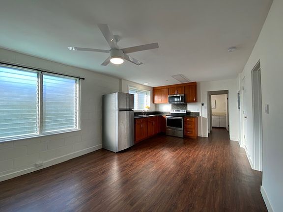 - Two story single family home - 4 Bedrooms, 2 Bath, 2 car carport - Upstairs and downstairs have private entrances - 2 Bedrooms, 1 Bath downstairs - 2 Bedrooms, 1 Bath upstairs - Full kitchen located downstairs - Partly furnished with 2 refrigerators, stove, and microwave hood - 1,671 sq. ft. living area - Tenant responsible for all utilities - Tenant responsible for yard maintenance - Washer & Dryer Hook-up available - Vinyl plank flooring - Ceiling fans - Sky light in stairway - Mirror closet doors - Near Kamehameha Field - Convenience store at corner of Gulick Ave. & Kealoha St. - Application fee is $20 per applicant (non-refundable) - Applicants must view rental in person - All adults 18 years old and older must apply - Non-smoking unit - No pets allowed