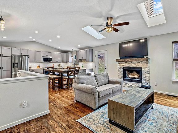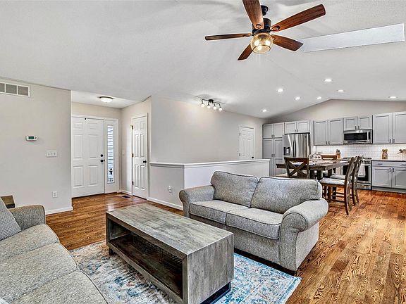 PEVELY RANCH! Level yard! These sellers have updated so much during their ownership! You will love the kitchen with its slabs of luxurious GRANITE covering the custom cabinetry! Upgraded Stainless Steel appliances too! There is a wonderful wood burning fireplace for those cozy evenings! The vaulted ceilings with a pair of skylights really open up the great room too. The finished HARD WOOD FLOORS were finished and stained in place and really set the tone. The primary bedroom has lots of space and a full bath ensuite. The secondary bedrooms are generous as well and share the hall bath. The Lower Level features a massive recreation/family room and beautiful bath too. There are new homes being built in this subdivision for far higher prices and dont have all of these wonderful features. Don't wait around to build - buy now! This one is going to go quick! Back on market due to buyer's loan being denied. NEW ROOF, soffit, facia and other storm repairs to be completed shortly.