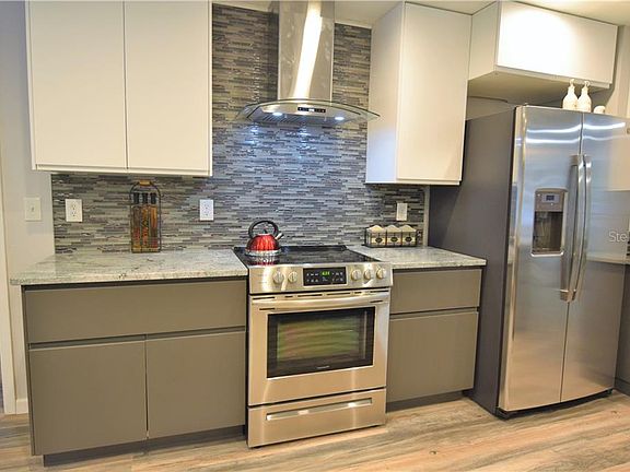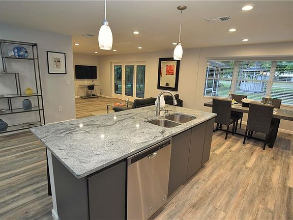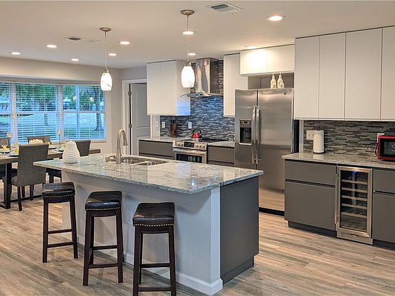 Your first impressions when upon entering this completely renovated home will be WOW! 3 Bedrooms and 2 baths and a beautiful, open and spacious floorplan. The New Kitchen comes complete with an island, all new stainless steel appliances, 2 color cabinets, a stainless steel and glass range hood, granite counter tops, and even a separate, built in wine cooler. The dining area is next to the large bay window. All bedrooms have new ceiling fans with 2 zone lighting. The Master Bath has a shower with a rain head for relaxing showers, dual sinks with granite countertops, and the large walk in closet can be found behind the barn door, nice Rustic Chic. The other 2 bedrooms both have access to the 2nd bath. That also boasts new updated shower tile and granite counters. Freshly painted inside and out and all flooring is easy care laminate. The lanai is screened but you would want to enjoy the Gazebo in the oversized back yard. Nestled on a huge, outside corner lot, this home sits on well over a acre by the 17th green and 18th tee box of the Palms Golf Club at Forest Lakes. Great location with easy drive to Downtown Sarasota, St. Armands Circle and Lido Key and our World Famous #1 Beach Siesta. All the work has been done for you so all that is left is to enjoy your new home.