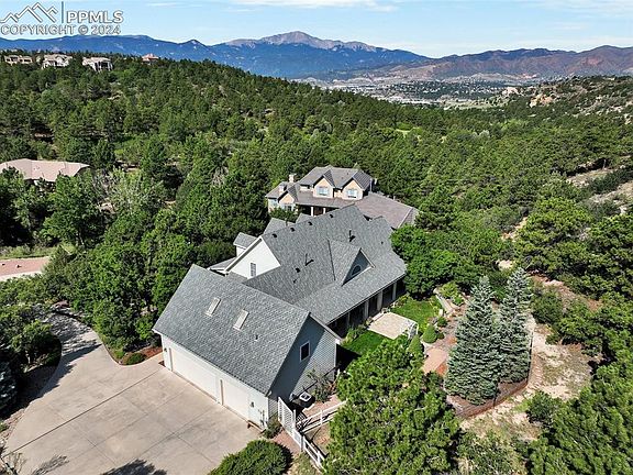 Tucked away on this peaceful Cul-de-Sac, you will discover this Exquisite, Immaculate, CUSTOM built home in prestigious University Park! You found your Colorado dream home nestled in the trees offering privacy, miles of trails, a professionally designed and manicured, lush garden on a HALF-ACRE of land! This is your personal sanctuary with soaring ceilings, cozy fireplace and gourmet kitchen! Enjoy a variety of Colorado wildlife from your breakfast nook! Relax and enjoy cool evenings on a spacious covered front porch or covered back patio...with limited Pikes Peak views. Gourmet kitchen features DOUBLE oven, microwave, refrigerator, massive Corian solid surface counter space, hardwood flooring, roll-out cabinets, spacious pantry and desk space! Elegant, formal dining with recessed ceiling, wainscoting, hardwood floors and bay window. MAIN LEVEL Master bedroom with walk-out to patio, 5 piece bath and jetted tub. Instant hot water regulator. A NEW FURNACE, A NEW CENTRAL AIR! TWO NEW Hot Water heaters. (Secondary furnace/AC for upper level) NEW ROOF in 2024. SEPARATE LIVING QUARTERS with access through the garage foyer. Huge WALK-OUT basement has wet bar, two spacious bedrooms and eating space for multi-generational suite. Note: low maintenance HARDY board siding! OVERSIZED side entry THREE car garage, sheet rocked with service door. Two electric panels. Ceiling fans throughout. Sprinkler system with 11 zones for drip and irrigation. Low maintenance turf in front yard. Lots of storage space. "Southern Design" by Don Gardner architect. Blueprints and landscape designs available. With 5,510 square feet, 7 bedrooms, 5 baths, this is a ONE-OF-A-KIND treasure! Centrally located with easy access to shopping, parks, schools and places of worship. See Video Tour and Interactive Video links! Don't miss out on this RARE University Park GEM!
