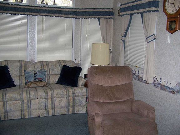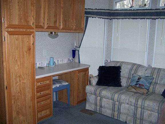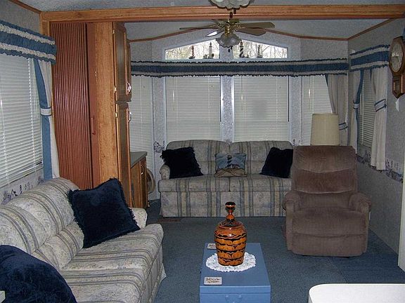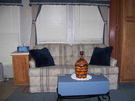 Great seasonal home with two bedrooms one bath near Ridinger Lake! Full deck and awing with all appliances, furniture, golf cart, small refrigerator and out door gas grill. 10 X 10 Shed included. Park has 2 pools, tennis court, basketball court, shuffel board court, miniature golf, restaurant, game room, many scheduled activities. Located on Ridinger Lake. Pier space available for yearly rental rate or trailer your boat in and out. Utilities are paid thru the park.