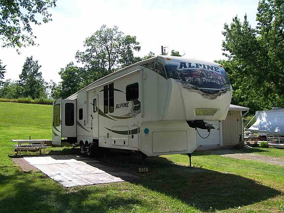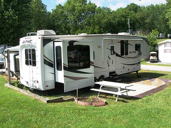 Immediate possession available with this lake area vacation getaway package at Yogi Bear's Jellystone Campground located on the west shores of Ridinger Lake (141 acre 10 mph fishing and recreational lake) just north of Pierceton Indiana (35 minutes from Ft Wayne, 60 minutes from South Bend). Package includes ownership of Lot 404 in Jellystone and use of all campground amenities. Lot has park utilities (water, sewer, electric), 10x10 storage shed, a large shade tree and ample room for parking. Seasonal campground offers swimming pools, café (with indoor and outdoor seating), tennis court, basketball court, shuffleboard, mini golf, volleyball courts, campground convenience store, comfort stations, band stage, horseshoe pits, sandy swimming beach (with bait store and pontoon rentals). Along with daily recreational plans and activities there are scheduled events for every weekend (live bands, beach party, 4th of July fireworks, Chicago Cubs bus trip, Blue Chip Casino bus trip and more!). Also included is a 2012 Keystone Alpine 3700RE 39 foot 5th wheel camper in "like new" condition (rarely used). It comes complete with furniture, pop-up flat screen TV with DVD player, central vac system, electric fireplace, 2 roof mount AC units, 4 slide-outs with hydraulic selector valves, retractable awning, laundry hook-up, cedar lined closet, open kitchen-dining area with deluxe cherry cabinets, Corian counter tops, 4 door refrigerator, convection microwave, LP gas range, free standing expandable dinette & more! A great way to enjoy a fun lake getaway at a price below market value!