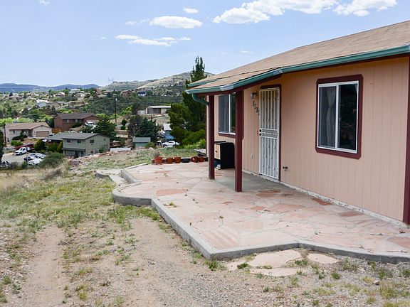 Panoramic views of the valley and surrounding mountains. Quiet location on a dead-end street. The dine-in kitchen has its own entryway plus laundry closet. Storage with closets in the bedrooms and coat closet in the hall. Every room has bright windows with mountain views. Outside flagstone patio with prehistoric foot prints. Rainwater storage for outside watering. Conveniently located between Prescott and Prescott Valley. Close to new shopping area with Sam's Club and Sprouts and medical facilities. Come view this home before it's gone!