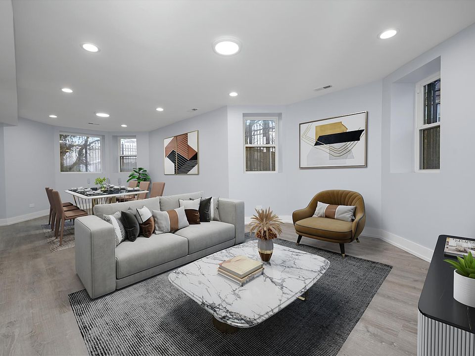 Be the first to live in this renovated Chicago Greystone in Logan Square! Classic charm with a modern 2022 renovation. Building sits on an oversized lot with extra wide floor plan. Garden level unit is 3BD/2BA with separate dining area, stylish kitchen, stainless steel appliances, quartz countertops, luxury bathrooms, in-unit laundry, full-sized windows, new exterior porch with a grassy backyard. Great location one block from the 606 Trail's Ridgeway entrance and walking distance to all the Logan Square hotspots. 3-min walk to #73 Armitage bus and short commute into downtown. Be sure to check out the virtual 3D walkthrough! Tenant responsible for electric, heat, and gas. Pet fee of $250. $495 move-in fee (no security deposit).