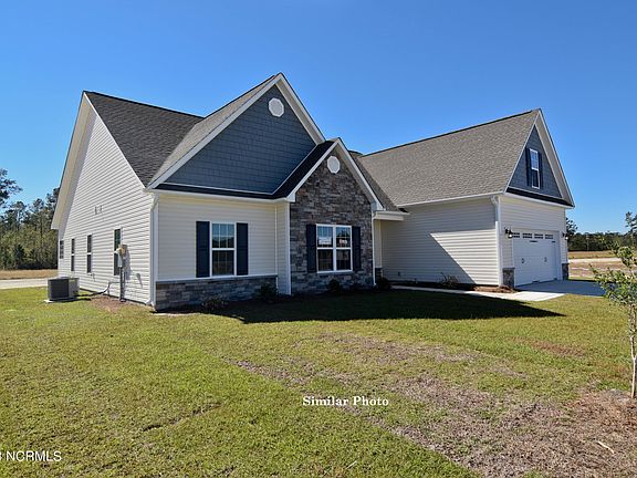 Welcome to the highly desired & popular community of Onslow Bay. Brand new construction built by Onslow County's most trusted & preferred builder, featured in Builder 100/ Top 200 Builders in the country. Onslow Bay is a hot spot, 3 miles to MCB Camp Lejeune's Piney Green gate, 14 miles to New River Air Station & minutes to area schools, shopping & dining. This beautiful neighborhood is sure to impress, complete with a clubhouse area & community pool. Welcome to the Sutton floor plan! 3 bedroom with bonus room/3-bathroom home with approx. 2283 heated square feet. A quaint porch area opens to a spacious foyer. The kitchen and living room are open to each other. The living room is approx. 16 x 16 and boasts a cozy corner fireplace. The living room also has a ceiling fan. The eat in kitchen features beautifully staggered cabinets, an island for extra seating and a 16 x 10 dining area with windows galore! Stainless appliances include a smooth top range, dishwasher, and microwave. The dining area opens to a 16 x 8 covered back porch. The master bedroom is approx. 15 x 14 and features a ceiling fan as well as a large walk-in closet. Relax in the grand master bath featuring a separate shower/garden tub, and a double vanity topped with cultured marble. Bedrooms 2 and 3 are prewired for ceiling fans. The 12 x 20 bonus room is that ''extra space'' you've always longed for: complete with its own bathroom! This charming floor plan is sure to impress. Separate laundry leads to 2 car garage, which is a great space to add some shelving for additional storage space! Enjoy a cup of coffee on the covered back porch. Also, a great space to hang out and entertain guests or display your favorite potted plants. Don't miss the chance to personalize this dream home. Call today! $10,000 USE AS YOU CHOOSE!!! NOTE: Floor plan renderings are similar and solely representational. Measurements, elevations, and specs may vary in final construction. Call L/A to verify.