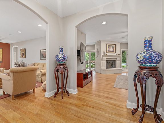 Welcome to your private oasis on 2 beautiful and private acres. This one-of-a-kind property has the perfect blend of luxury, function, fun and space making it perfect for entertaining, working, hobbies or just relaxing. Step into the beautifully updated and thoughtfully designed main floor through the gorgeous wood and glass double doors into the large foyer. On your left, a formal living room combined with a formal dining room with stunning real wood floors for those special occasions. Straight ahead is the main floor cozy family room with views of the lush backyard and a modern wood burning fireplace with gas starter and unique contemporary insert if you don't want the additional work of wood logs. Off towards the chef's dream kitchen and informal eating space you will find a modern built in feature with lights for all your storage and display needs. The kitchen is perfectly designed with top of the line stainless steel appliances including built-in refrigerator, gas range, double ovens, convection microwave, warming drawer, ice maker and trash compactor all nestled around the custom island with stunning glass top feature made just for the area and imported from Canada. Main floor powder room for guests and large laundry room with storage cabinets, sink, ironing board in a separate room just inside of the oversized 29x22 attached garage. The primary suite has French doors and a wall of windows with sliding door to the rear covered patio which is wired for a hot tub. Magnificent walk in closet, private en suite bathroom with dual sinks, jacuzzi air tub and oversized separate tiled shower. Two more handsomely sized bedrooms and an additional bath round out the main floor. The basement features a stainless steel wet bar with refrigerator, rec room, abundant storage, private sauna as well as two additional finished rooms with egress windows perfect for guests, office or work out/ hobby room (could be considered 4th and 5th bedrooms with addition of closets). The home is adorned with additional features that include BRAND NEW roof and gutters on the house, irrigation well, central vac, surround sound speakers, exterior camera system, electric gate, zoned HVAC system (all less than 5 years old). For the car collector, traveler or hobbyist there is a SECOND garage hosting a bay for an RV with a 220 and interior measurements of 12x37.6 inside with a 12 Ft metal door AND an attached heated 3 car garage measuring 29x35. INCREDIBLE!! The back yard is completely fenced with an electric security gate at the house and double gate for larger access. Home has an inground heated swimming pool that has not been opened in several years due to sellers no longer interested in using it. This estate has it all and is not your everyday cookie cutter floor plan. Schedule your private showing soon, you don't want to miss the opportunity to call this GEM your new home!